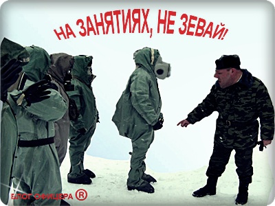 - Общевойсковой защитный комплект одеть, газы! – командует офицер.